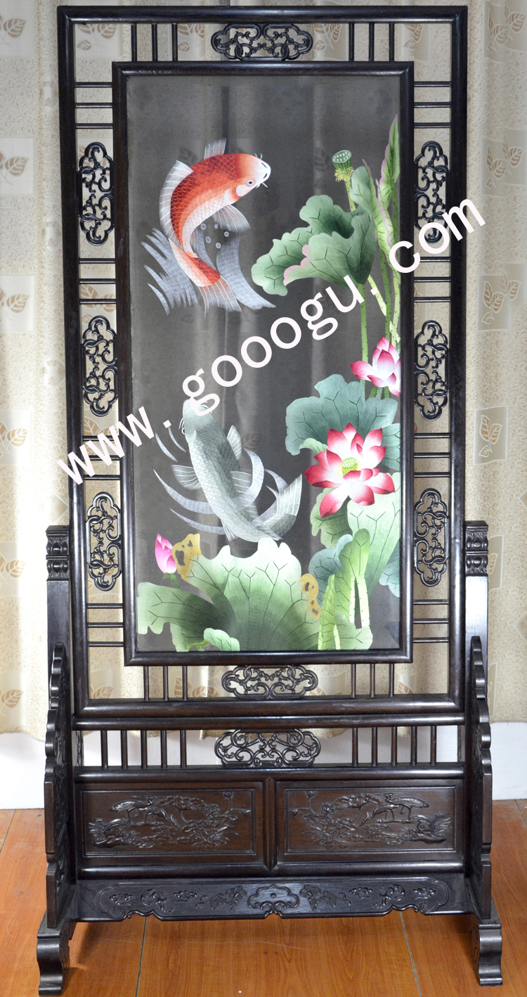 蘇繡精品屏風 滿繡隔斷 純手工精品 荷花 中式屏風